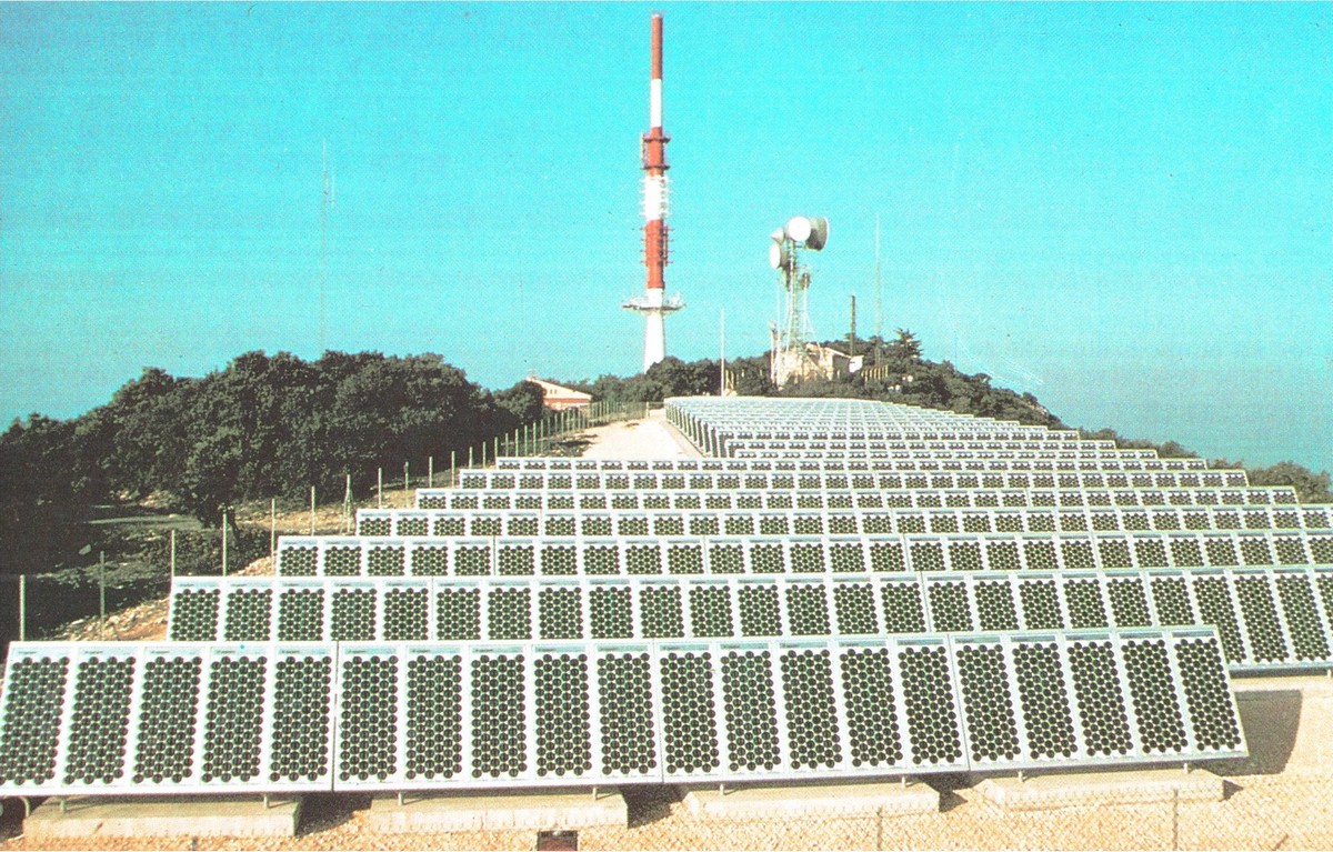 Au quatrième trimestre 2014, le Languedoc Roussillon constitue la troisième région française en termes de puissance raccordée au réseau et de production d’énergie solaire (+ de 74 WM de raccordements au cours des trois premiers trimestres), soit 26 475 installations raccordées au 30 septembre 2014. Dans son numéro 20 du mois de janvier 2015, le journal d’Alès Agglo consacre d’ailleurs deux pages (pp 12/13) sur le photovoltaïque par rapport à des installations déjà réalisées ou des projets en cours de concrétisation ou d’étude. Une ressource d’énergie naturelle en constant développement ces dernières années, mais vous souvenez vous pour celles et ceux qui l’ont connu, ou le saviez vous pour les autres, que notre village fut porteur d’un vaste projet de centrale photovoltaïque, abouti et réalisé en 1983 ? 710 modules incrustés de plus de 50 000 cellules photovoltaïques, sur 700 m2 de superficie installés au Mont-Bouquet ! Comme pour le relais TDF implanté sur ce même site, c’est une nouvelle fois par le témoignage de Monsieur Bernard Creusot, qui nous a également fourni les informations, les images et articles de presse parus dans Midi Libre à cette époque, que nous pouvons vous relater cet événement marquant de l’histoire de Brouzet. La centrale photovoltaïque expérimentale du